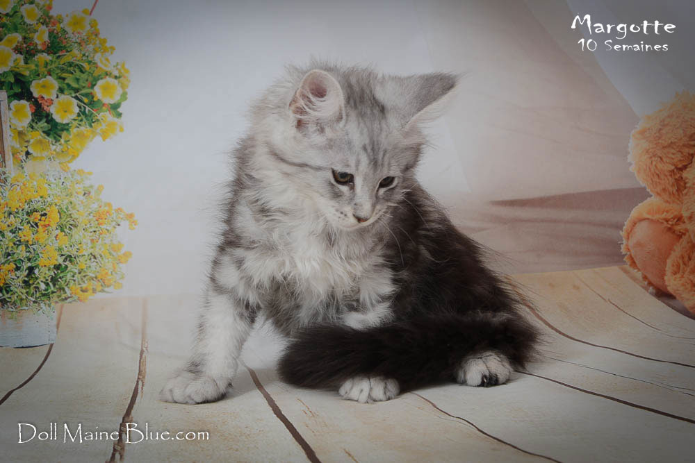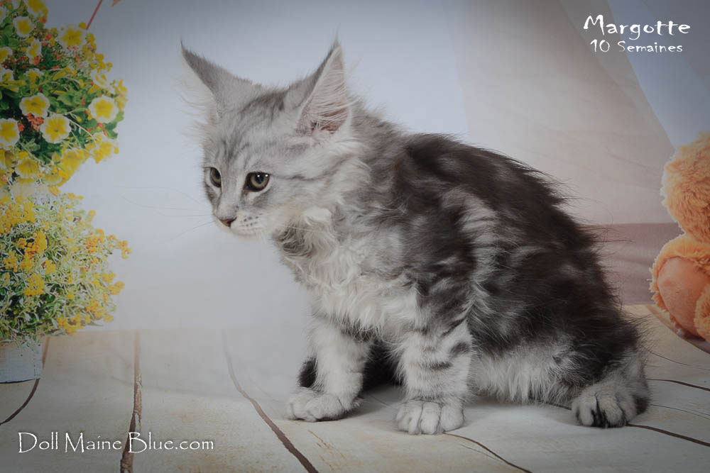 Maine Coon Femelle (Robe: Black tabby and White)